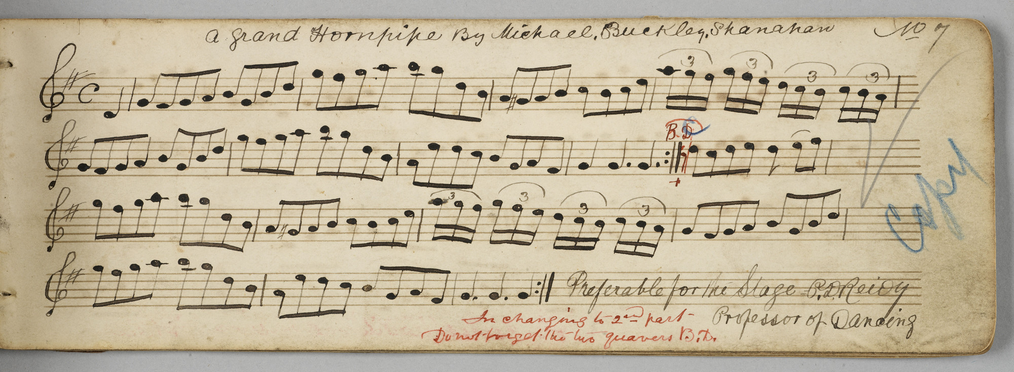 O’Neill recorded this in his Waifs and Strays, collected from a manuscript of one Patrick Reidy, a dancing master living in London but originally from Castleisland, born there sometime in the 1840’s. Reidy attributed this melody (and a number of others which he provided to O’Neill) to Michael Buckley Shanahan, who he said was a ‘celebrated violinist’, the son of a piper born in Kilrush, County Clare, with a great reputation in Kerry and Limerick in the 1860s. So this tune may have made its way to Kerry from Clare originally, but long enough ago that it’s been naturalized by now!