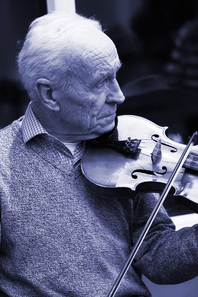 Jackie Daly playing the concertina in a rare moment.